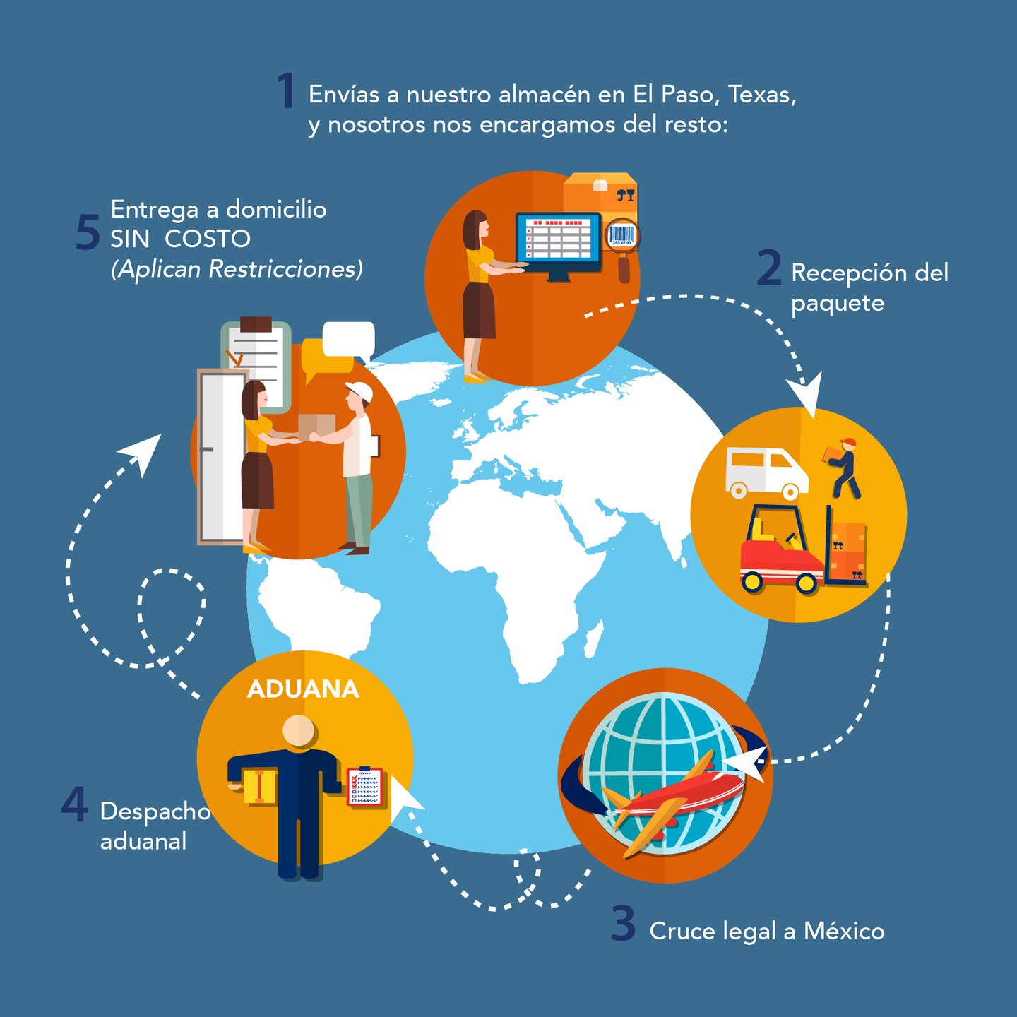 Importamos desde cualquier parte del mundo a Mexico. Vía Estados Unidos y sin complicaciones.